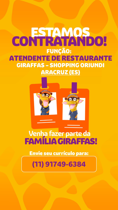 Executar as rotinas operacionais de qualidade, serviços e atendimento no restaurante, cumprir com a sequência de etapas de trabalho definidas pelo superior imediato, seja em atividades de higienização, limpeza e manipulação de alimentos e equipamentos, atender aos clientes, executar as atividades de acordo com as normas, procedimentos e padrões da rede Giraffas, visando suprir todas as demandas do restaurante.