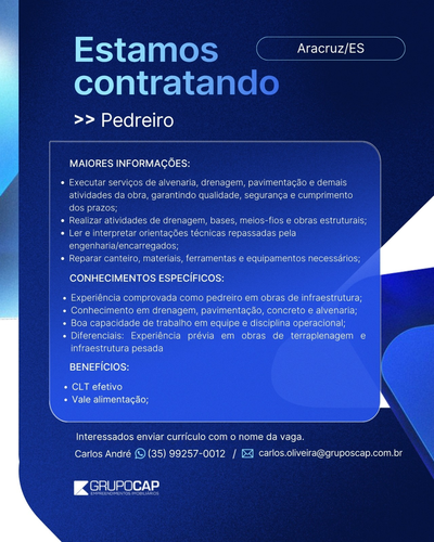 Experiência comprovada como pedreiro em obras de infraestrutura