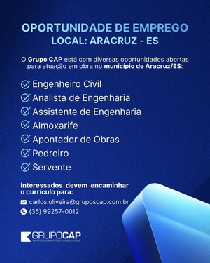 O Grupo CAP está com diversas oportunidades abertas para atuação em obra no município de Aracruz/ES